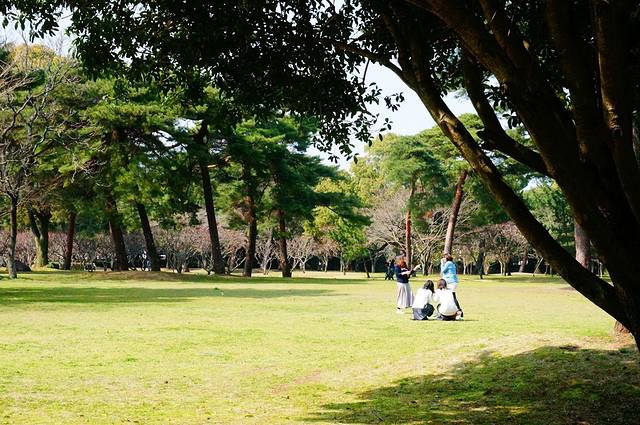 然后别府公园算是意外收获,真是好漂亮,古树和草地连成片,也没什么人,几个妹子在草坪上吹泡泡照相,真心觉得快乐。