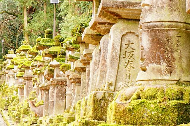 春日大社于768年为了守护平城京及祈祷国家繁荣而建造。是藤原氏一门的氏神,由武翁槌命乘鹿而来的传说,把鹿作为神的使者。所以在奈良能看到那么多鹿~