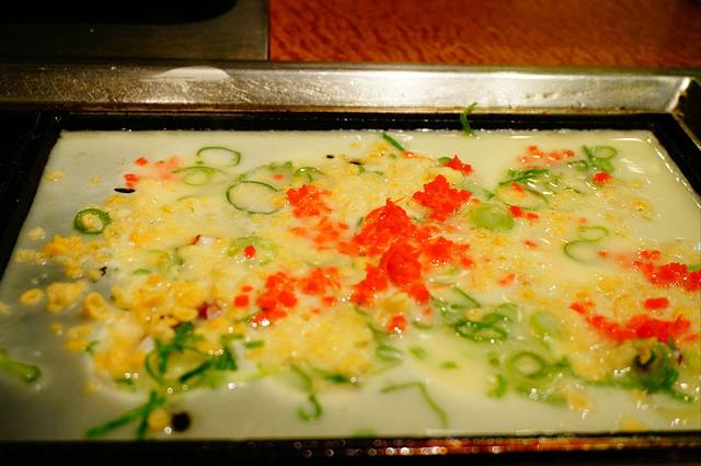 左边是大阪特色食物大阪烧,右边是章鱼小丸子,开始是一坨面糊,要自己动手滚成丸子,我俩吃之前不知道,把服务员急坏了哈哈