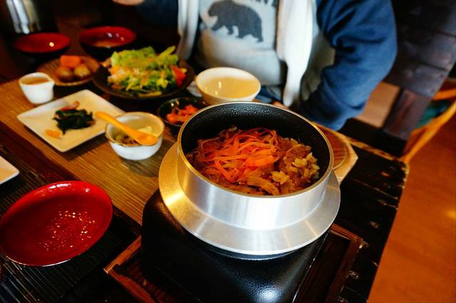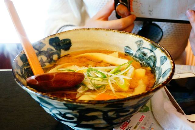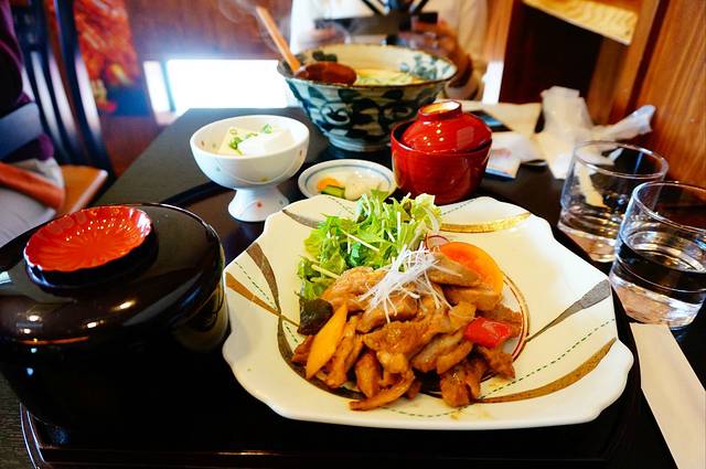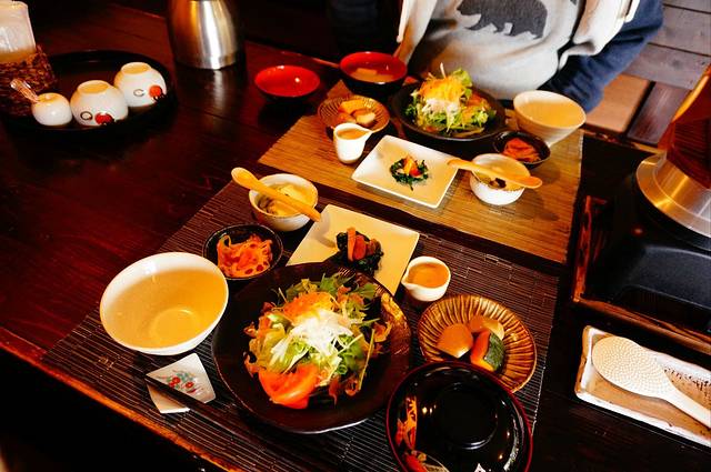 到了由布院天黑成这样了,这个山里的小村黑灯瞎火的,夜里应该有很多星星吧,想起还没吃饭!入住的酒店老板好心开车带我们到他认为一个好吃的店,其实就在由布院站门口。和老板商量好一个小时后来接我们,然后进去一看爆满!饭馆客气的说因为要打烊了只能做打包,周围也没其他还开门的商店我俩只好拿着盒饭在路边吃了一顿。