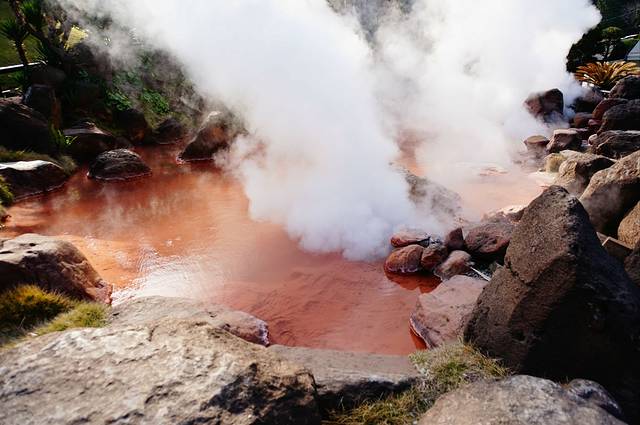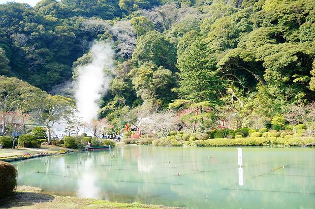 下了JR出车站就可以坐bus去地狱公园,但觉得实在是恶心,拿了地图看不远处有个别府公园,和老公商量先去坐坐再走。
