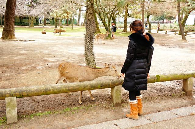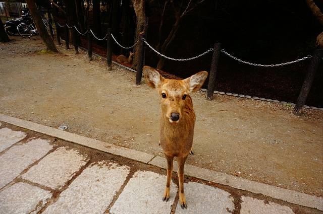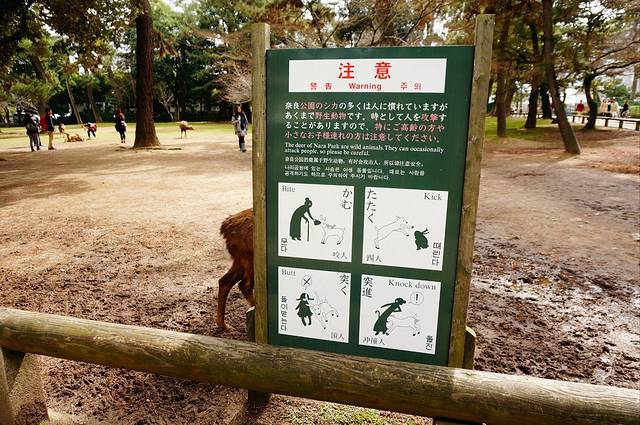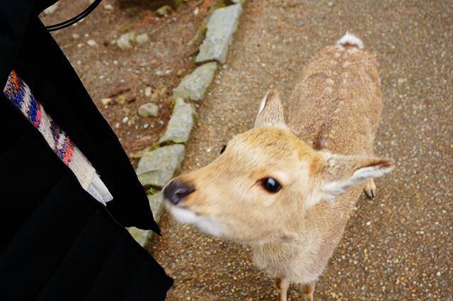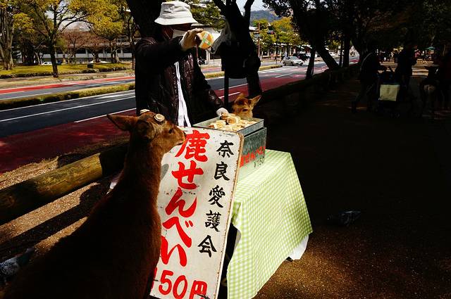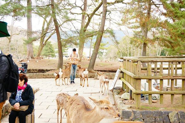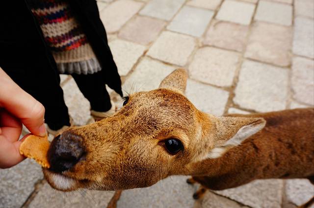 2.奈良的鹿很馋,很喜欢撒娇追人和拱人(当然招牌动作是鞠躬),喂完鹿饼干可以摊手给它看,就不会再有一大群鹿追着你跑的景象了。