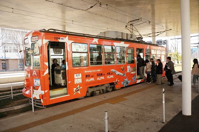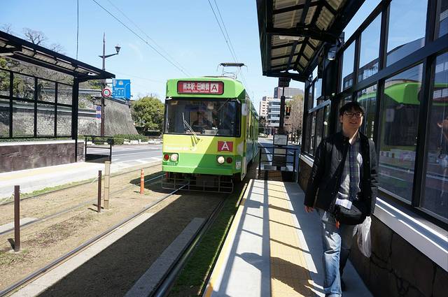 出站之后在门口乘坐A线可到熊本城