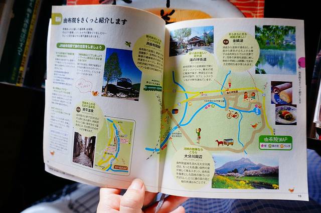 酒店里书架上的由布院旅游指南