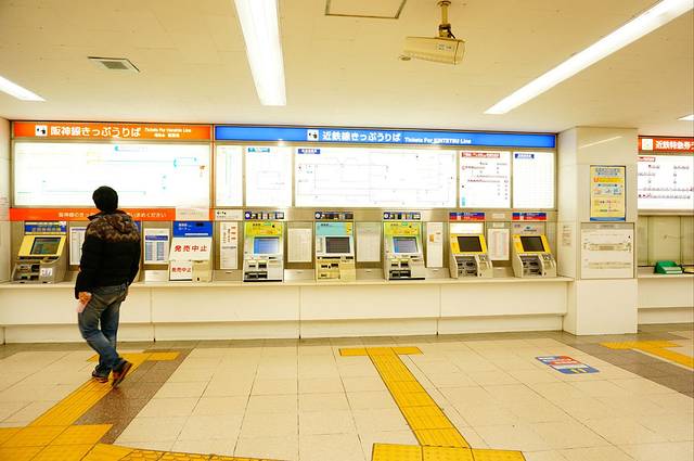 仔细看就是从这里到每一站的价格,之后在自动售票机买对应价格的票。在这里我们耽误了好久,因为有的站不是用繁体字而是啥平假名片假名写的,完全不认识。后来有个帮助人员实在看不下去了来指导我们,告诉我们先去Y14(其实就是难波)然后那里有去奈良的近铁。