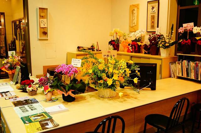 在路边吃晚饭,发现由布院站的等待大厅里有椅子有桌子也有人吃盒饭,我去,我俩为啥要在路边吃呢,这里还能边吃边看展览...