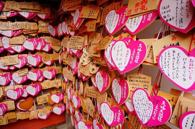 在清水寺那个求姻缘的小寺里,本来想给篱梅离买点东西。