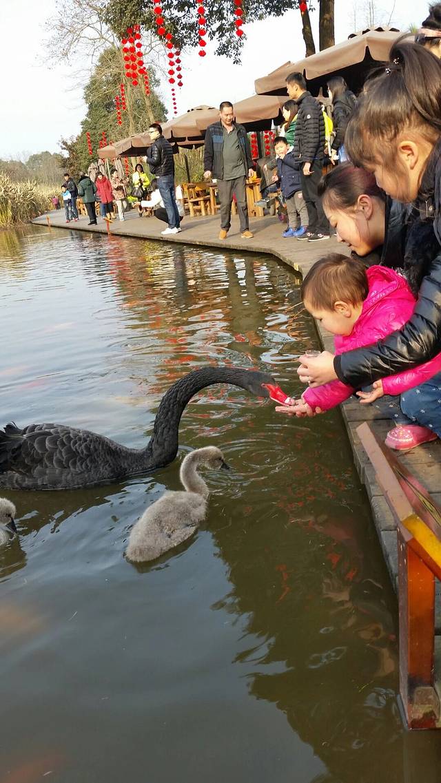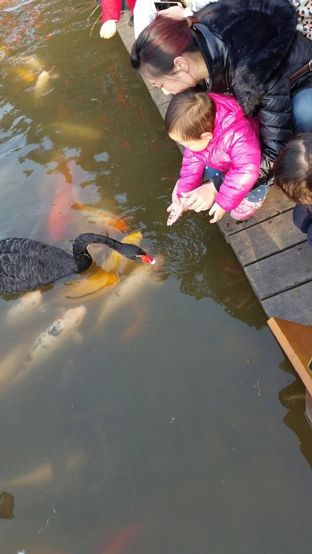 延着往下走,就是太阳产房,不过我和宝爸做了件最傻的事,在还没有到太阳产房的地方看见有指示牌去天鹅湖,我们就说去看看,结果走了n久,其实天鹅湖就在一进门的地方,正确路线应该是去了太阳产房,一直往下走再去天鹅湖的。不过还好,黑天鹅很漂亮,宝宝很喜欢,沿湖往前面走,有小卖部卖鱼食2元一包,可以喂鱼。不过我们更喜欢喂天鹅……