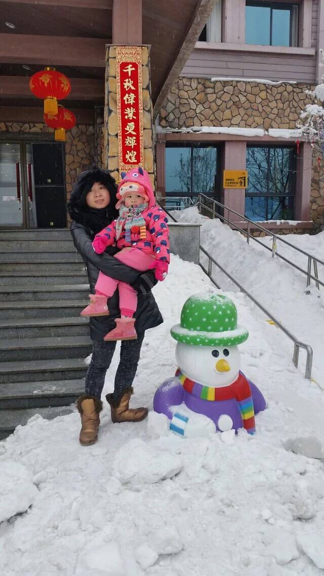 餐厅前面就是映月湖,已经结了冰,看了下玩的项目,只有长城是可以带小朋友玩的,别的好多都不能,所以我们也没有参加项目。单个玩比较贵,有套票70玩4个固定的项目,问了下大概都是坐着不同的东西从上往下滑。我觉得还是坐雪船好玩……大部分带小朋友的都是找一个小山包挖雪玩,很多人都是映月湖旁边玩,地方小,不安全,似乎是不知道我推荐的那一大片雪地。也是如果不坐索道上日月坪我们也看不到那一块地方,因为正好在售票厅的后面。