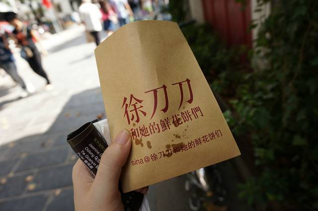 昙华林著名吃食 徐叨叨鲜花饼。感觉是把云南的鲜花饼烤了一下,但放了非常多的油啊 店家递过来油就浸透纸了..