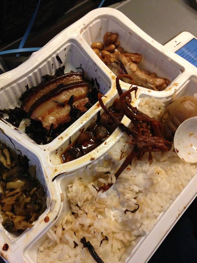 35的动车盒饭,鸭舌是我们自己买的周黑鸭