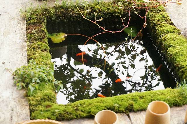 桌子上嵌有一鱼缸,我说刷干净也能吃涮锅