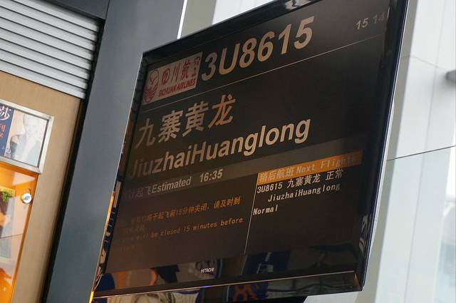 我们在机场买的一个去九寨的机场大巴,然后他把我们在半路加油站放下,包给一些黑出租等私人