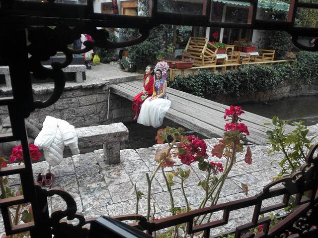 客栈问前美女拍写真