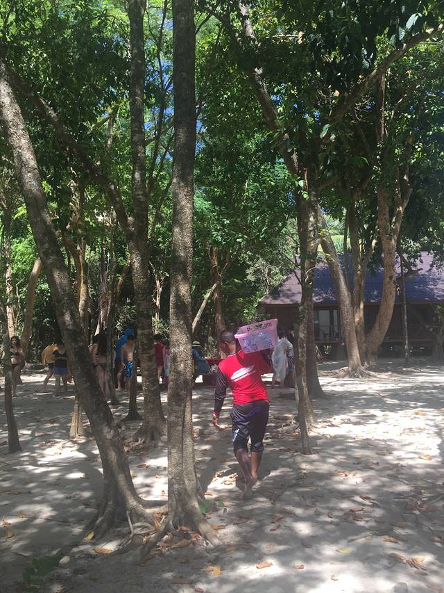 经过三小时的车船联运,终于上岛啦!我都快渴shi了。自从吉隆坡机场吃饭后就木有喝过水。van在小岛上穿过了集市,卸了一些货物之后终于到了我们的酒店。ps。司机好会做生意哇载人又载货的。