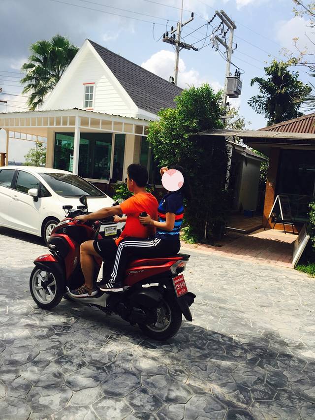 第一次感受到了泰式车速。几次刹车时,箱子差点滑落到了前面。还好我反应及时。稳住了箱子。看来我的二头肌还是挺有用的。哈哈哈。