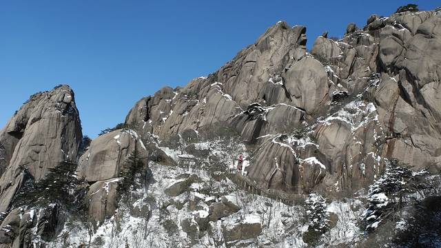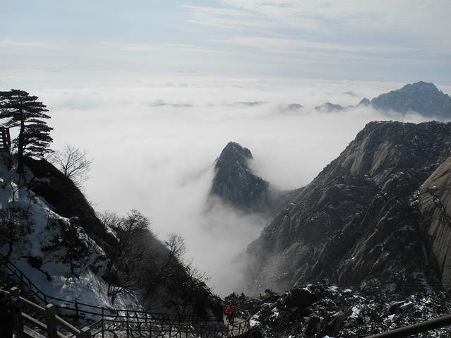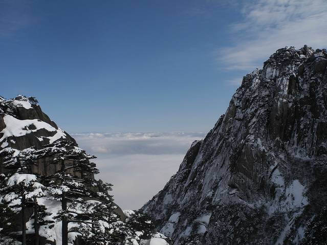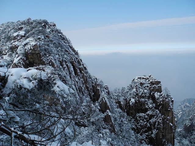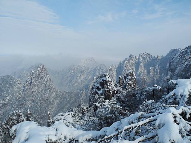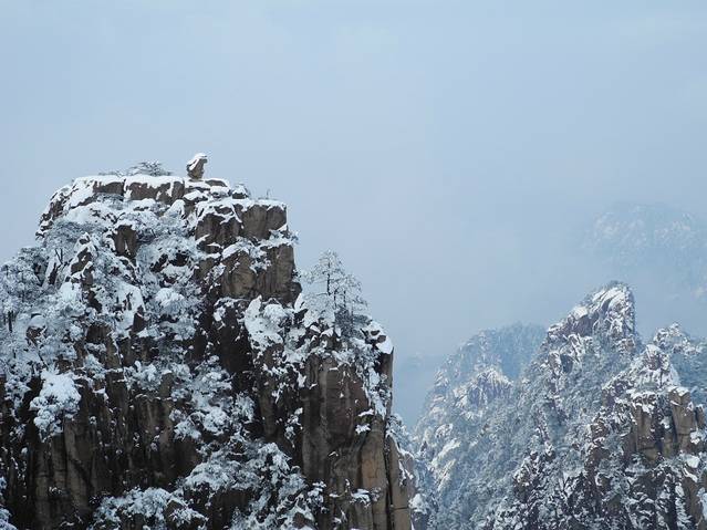 冬天,候鸟都南飞了,可这次我们却偏偏往北走。“五岳归来不看山,黄山归来不看岳”,这就是动因。虽说人少一直是出游的理想,但这个季节是黄山淡季,很难想象冬日黄山有怎样的景致。也许,从内心讲,这次出行,只是想一家人趁着假期出去走走,并不曾期待什么,只是期许有少许雪花飘过。然而,上天十分眷恋我们,不期而至的大雪成就了这次旅行的饕殄盛宴。作为生于斯长于斯的南方人,雪见得不多,满眼漫天飞舞的雪已是在25年前了。可见识过银装素裹的黄山后,我还是有底气豪迈地说“黄山归来不看雪”。