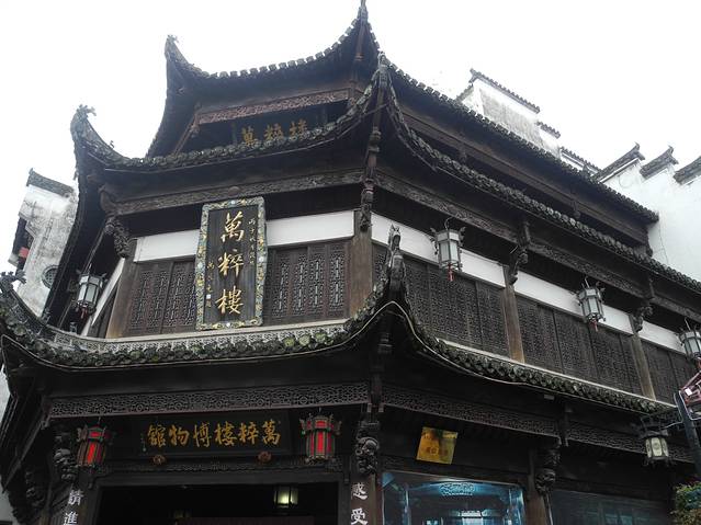 3日下午四点多和人拼车前往黄山市屯溪老街(也是20元/人),以便第二天下午乘高铁前往杭州。其实除了屯溪老街,在横江河对面还有一条黎阳老街值得看看,两条老街一桥相连。老街有很多土特店、文房四宝也很多,特别是歙县砚台。食肆也很多,逛累了可以就地用餐。可能大多数人都心心念念想尝尝臭鳜鱼、毛豆腐。这两样地方特色真是叫人不吃不知道一吃吓一跳,特别是臭鲑鱼,吃了一口绝不想吃第二口。但话又说回来了,不吃又怎么知道它的味道呢。