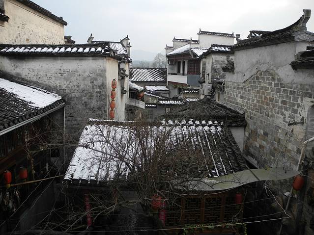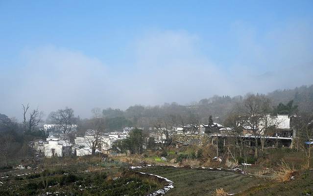 头天去到宏村,大概五点左右,所以四处逛了逛。感觉村子不大,因快过年了,好多店关门了。所以我们决定第二天上午去塔川村,中午十分回到宏村继续游览,感受徽派建筑的独一无二。宏村到塔川很近,走路也就几十分钟。一大早,我们到村口包了辆车,二三十元,几分钟便到了。现在雪已经融化了,只有房顶还覆盖着雪,草上、菜上、树枝上也是星星点点残存着。虽说塔川村以秋色著称,雪后去走走也能感受到她的静谧。