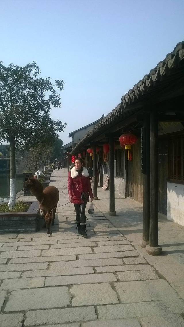 牵着羊驼的女人