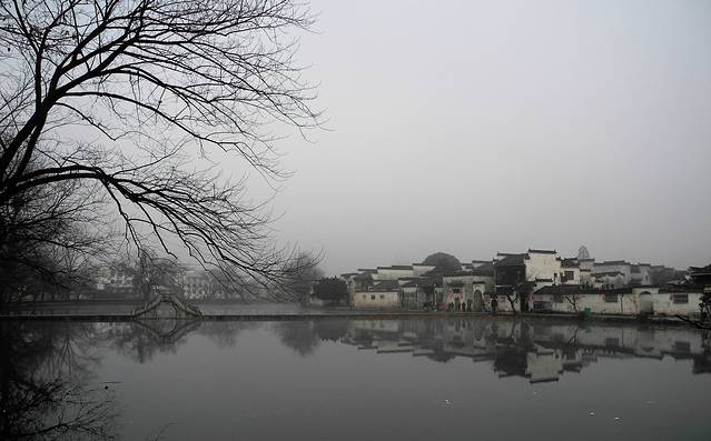 晨雾中的宏村南湖
