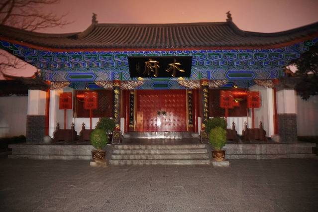 木府已经关门了,只能站在铁栏杆外面拍个照片