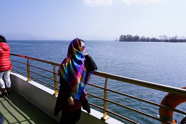 2月3日我们来到了大理的洱海,环洱海游是在大理体验慢生活的必修课之一。坐上游轮行驶在洱海之中,感觉自己置身于一副山水画中.假如你问我,在大理,我最想看的是什么,我会告诉你,苍山雪映洱海月!也即“银苍玉洱”之美景。本来,这样美好的洱海巡游,最好是骑个单车,和爱人好友相伴,一路说说笑笑,想走就走,想停就停,慢慢的把洱海兜个遍。但是跟团游,只能是走马观花了!