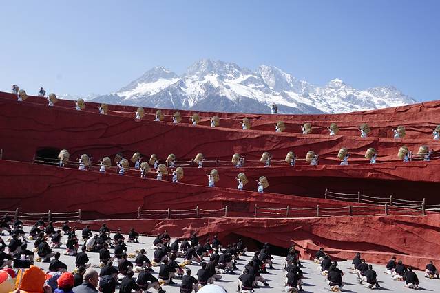从玉龙雪山上下来,我们马不停蹄的赶往下午13:30的《印象丽江》实景演出。在丽江旅游中的演出,很多人包括很多导游都在推荐丽江的《丽江千古情》,光影特效和3D视觉堆累起来的歌舞表演,在宣传中也被称作“一生必看的演出”。相比下,《印象丽江》就显得单薄而晦涩。不过五百多个来自10个不同民族的非专业演员,在海拔3100米的玉龙雪山脚下,在没有绚丽灯光和各种高科技的手段的辅助下,把丽江、把纳西族最古老的民俗文化传递出来。也许和我一样,很多人都未必能看得懂每一个章节的内容,但是相信更多人也和我一样,能读懂这种扑面而来的质朴而自然的气息。