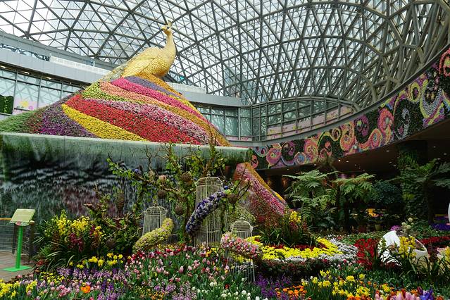 6号晚上直接住在昆明花之城豪生酒店的,酒店以花为主题的,不同区域的房间花的主题也不一样,我们住的是玫瑰的,还不错,第二天就是参观花之城。花样孔雀昂首望,千叶玫瑰自芬芳。