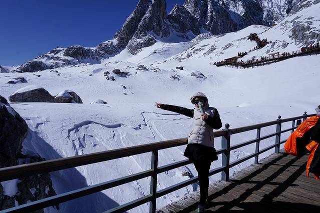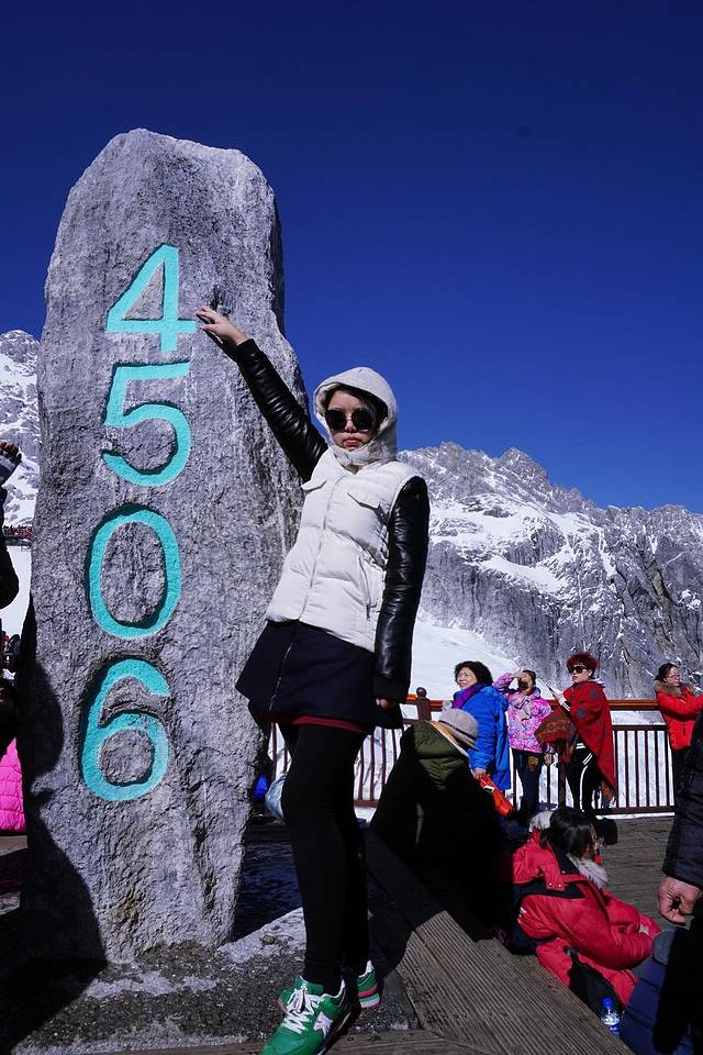 第三天一大早我们就来到了传说中的玉龙雪山,玉龙之行第一站就来到了景区内最美的景点之一:蓝月谷,在参观完蓝月谷之后就坐索道上玉龙雪山了,本来不准备买氧气瓶的,但是导游说让每个人都买,最后就买了,等坐缆车到了4506之后发现确实需要氧气瓶的,只是两个人一瓶就可以了,上去之后尽量上蹦跶,从来不吃巧克力的我突然发现巧克力特别好吃