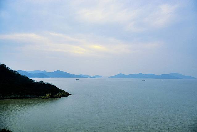 寻山路向下,远山近海,渔舟唱晚.