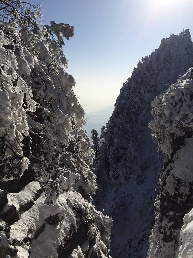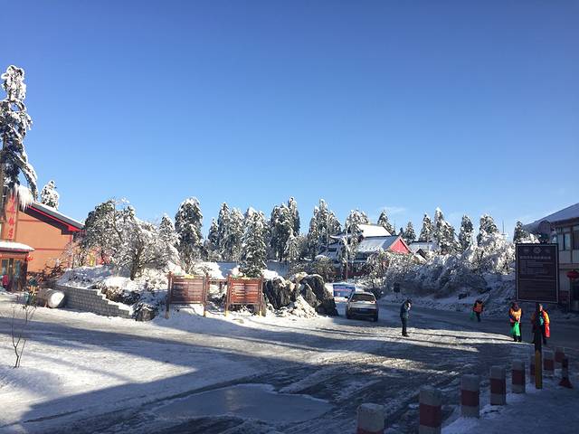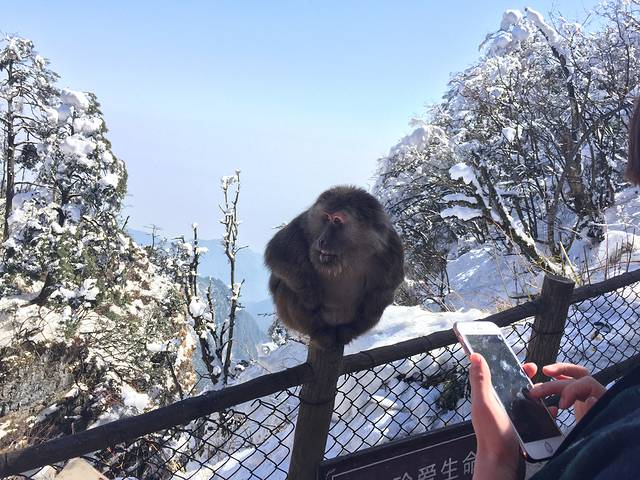 到达零公里停车场后再转乘当地旅游大巴前往雷洞坪,雷洞坪再爬山去到接引殿才有缆车直达金顶。路途虽然不远,但海拔高空气稀薄,积雪深路途湿滑,有点担心他们吃不消,但是他们看到如此仙境,也坚持携手向前