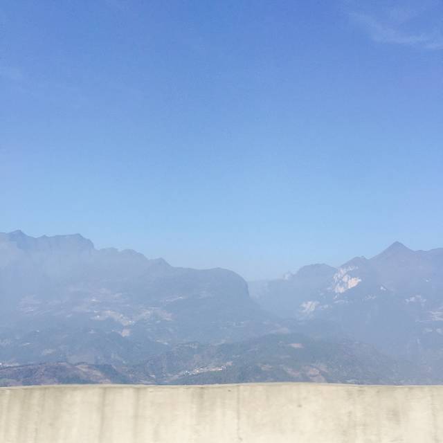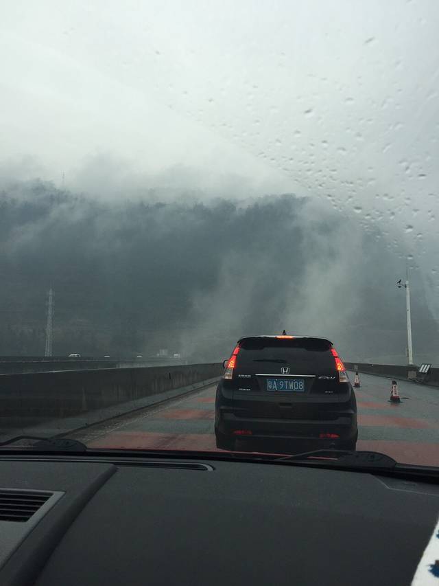 今天湖北大小雨不断 但是高速上还是大雾 周围的山被雾笼罩着像是仙境一般