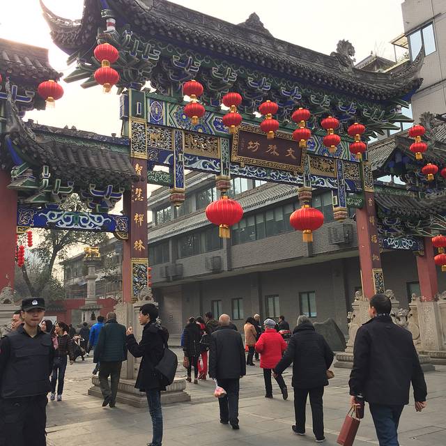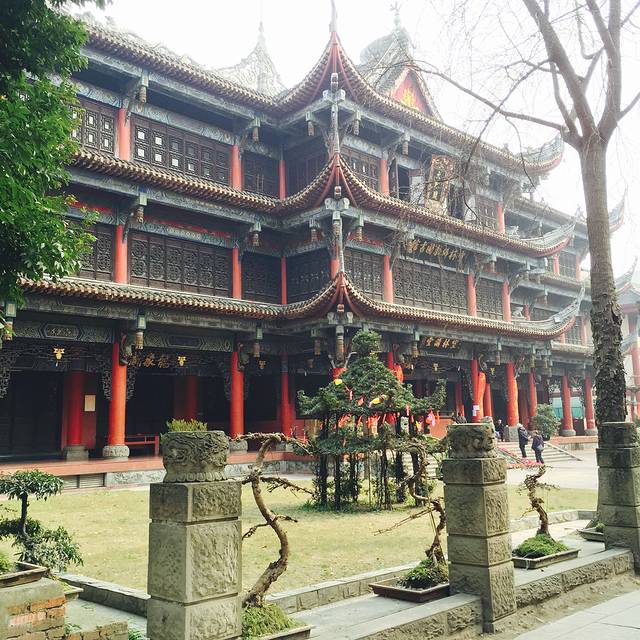 文殊院除了院里的佛寺之外 实际上是在一个文殊坊 也是一条古街 道路两侧有当地的小吃 还有喝茶的 各种商店