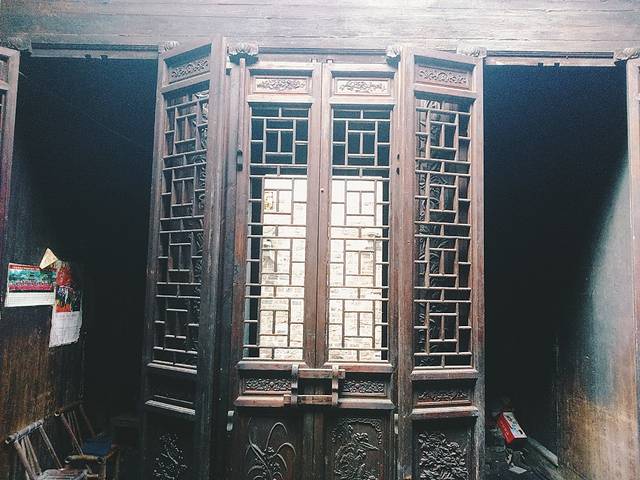 这是个二进式的老屋,木工精致是这个屋子的特色,从窗柩的雕花就可以看出一二。
