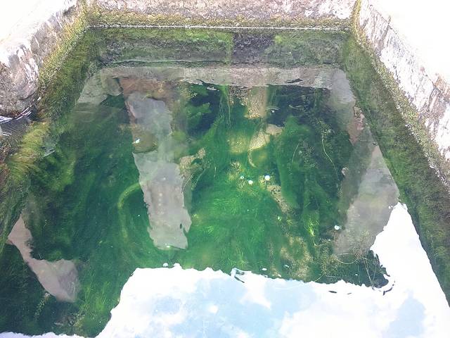 韵泉,分为饮、用、洗三个池,可以直接饮用。尝了一口,味道清甜。