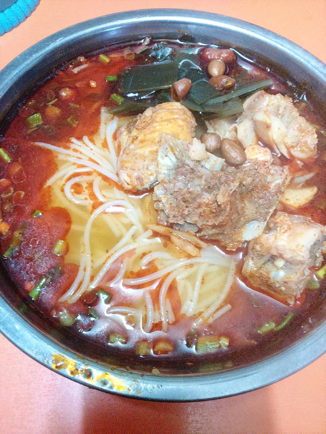 一大早一碗鱼粉下肚,鲢鱼熬汤,放上花生和海带。辣的很过瘾~