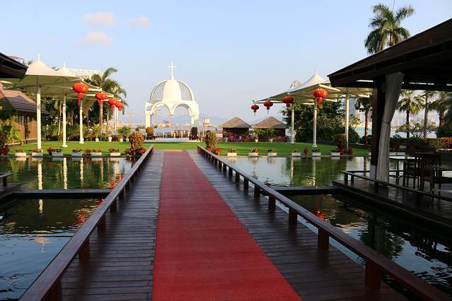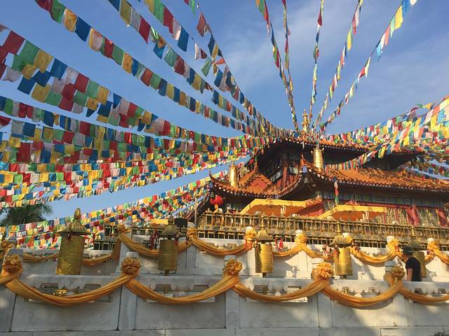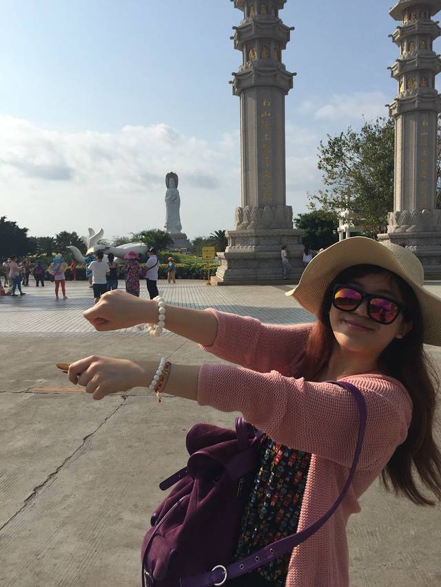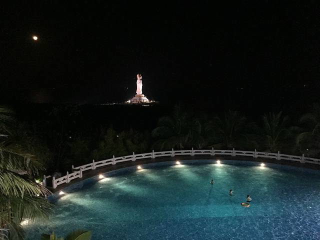 到了南山''不仅窗外就是108米的海上观音''还有大泳池和高照的明月遥相辉映~