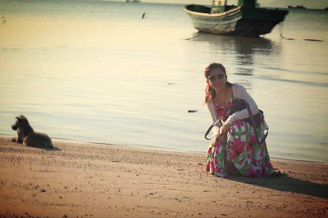 找了家临海的餐馆,那边在加工刚买的海鲜'我就去海边浪了,偶遇狗狗一条