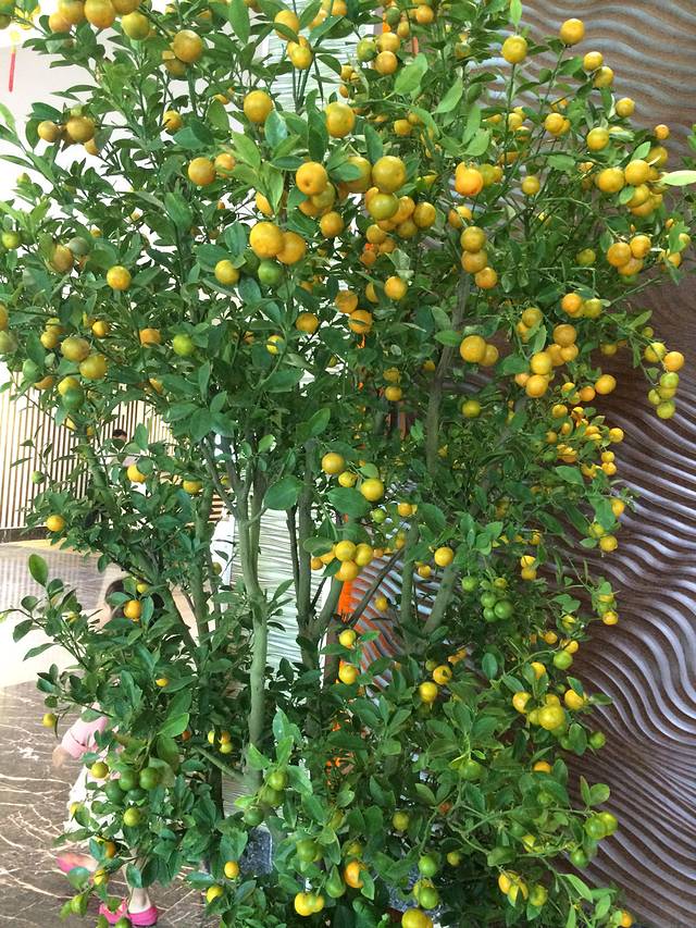 摆放在酒店大厅代表着金玉满堂、财源广进的金桔