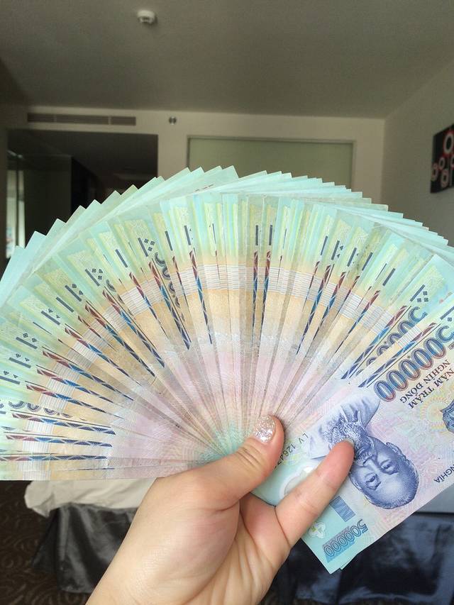 峰回路转,话说在将手中的US💲换成墨绿的越南盾的时候,改变的不仅仅只是颜色,纸币上的金额大得离奇,看着5那后面一大串圈圈,有种瞬间变成土豪的赶脚……今儿姐可是两千多万的身价😄😄再告诉你,没看到越南人用验钞机哟