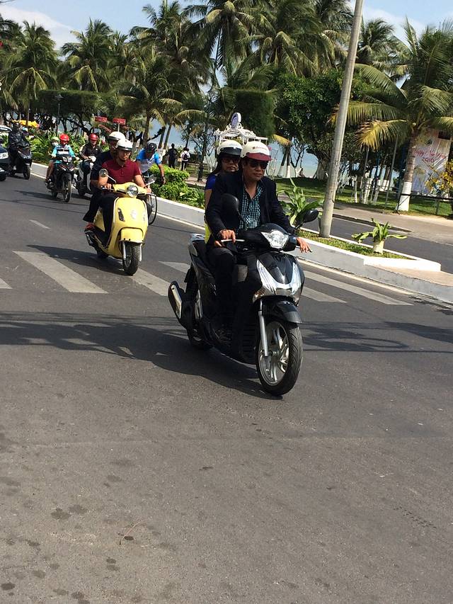 越南的摩托大军是一大特色,很多是Honda牌滴,一家四口骑一辆车是标配