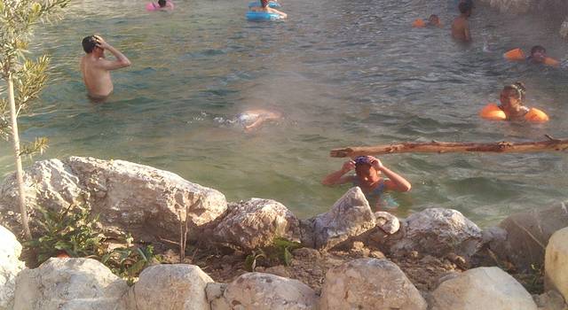 温泉池边烧烤.垂钓.还有露天电影KTV.还有温泉钝土鸡,很棒了.水很请.就是有点烫.环境比较好,和自然一体.