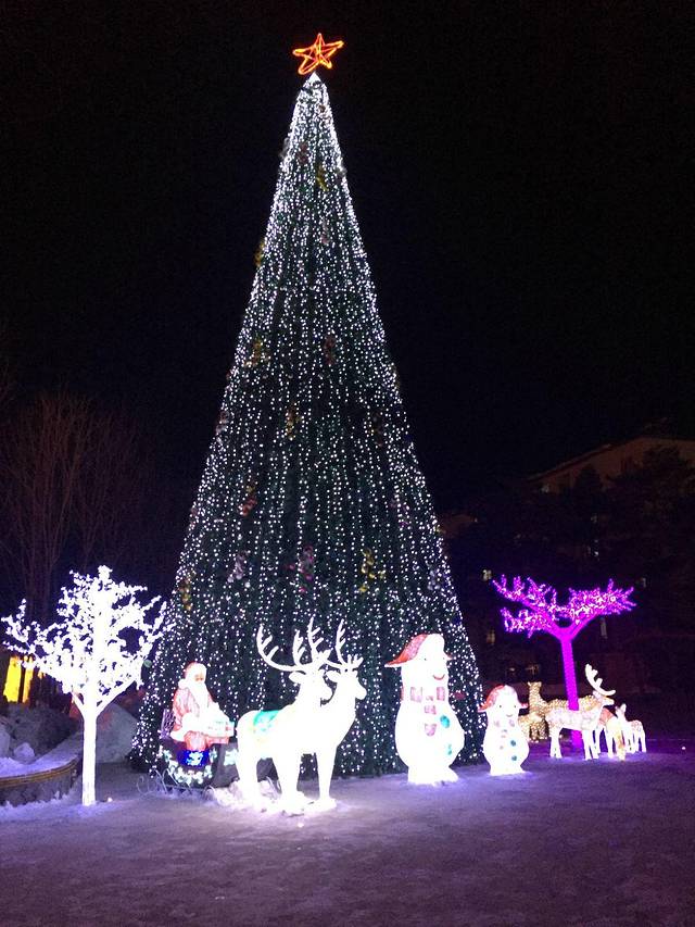 夜色降临,灯笼高高挂,一片祥和气息。可惜今年是暖冬,雪蘑菇不够大~