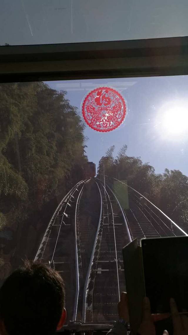 酒店开车过去大概不到30公里,都是乡镇公路,最快可以开70,沿路风景不错,可以看到茶田和小别墅。到景区后停车要收费,15元停一次,出门时收。景区大门买好门票后往里面走,走过竹林栈道后可以乘坐小火车到半山位置,然后选择左线地轨上山看熊猫或右线缆车上山敲钟。我们没有坐小火车,因为沿路风景实现太美了,那个湖水又青又透,空气也好。如果去时人不多的话,不建议坐小火车。到半山后,我们选择了左线看熊猫,因为人太多,地轨排队就排了50分钟,上山后比较冷,除了空气好之外,也没有什么好看的,熊猫也只有一只,还不待见人,匆匆看了两眼就排队坐地轨下山了,然后去排小火车到大门,开车返回南京,结束行程。