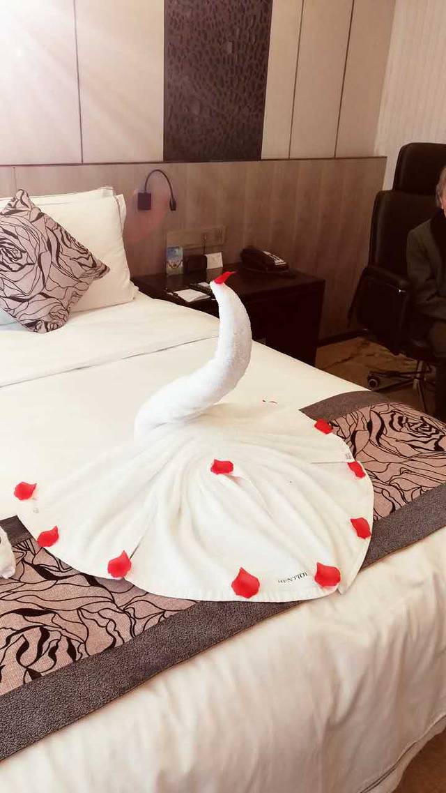 五星级酒店,服务非常好,过年期间还送了剪纸相框、猴子玩偶。房间内可加床,适合三个大人住。中午到达酒店后,停好车就去办理入住,房间里加过床后就带着东西去泡温泉。