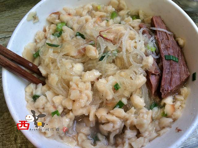 去吃了老米家的羊肉泡馍,不过我们俩是被羊肉吓怕了,所以点了一个牛肉的,两个饼子,我们共一碗吃,真的是太多了,吃不完。过程挺有意思,掰了半个小时,煮了还挺久。