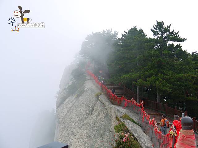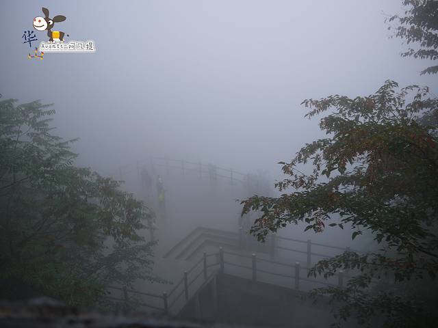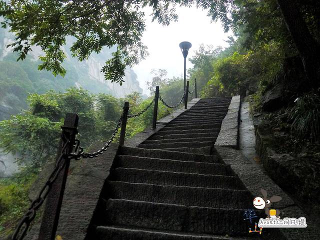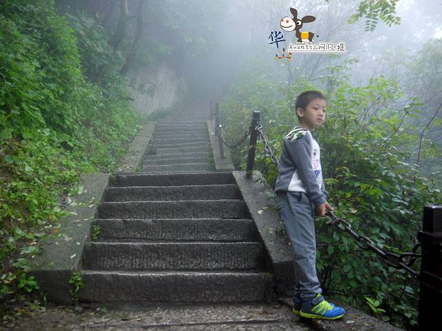 30号起了个大早,前一天晚上下雨,还挺大。早上起床的时候也下雨,特别担心,早上起来冷把厚衣服都带上了,雨衣也穿上,买了早餐开始登山,门票全票是180元,觉得不便宜,可是上去以后看到在那些地方凿出来那样的路真不容易
