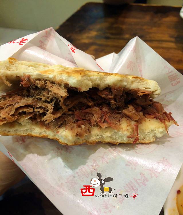 去的是老孙家,点了一个凉皮(6元)、肉夹馍(18元);凉皮觉得很油,不喜欢;肉夹馍是牛肉的,味道是不错,不过到底还是偏贵了,一个人吃也刚好,肉也算多,但是比较干