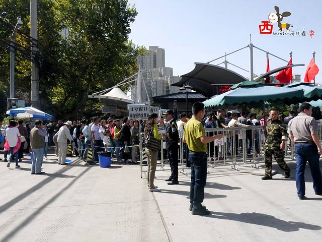 中午退房后坐车去了火车站,29号的火车站开始有一点长假的感觉了,人开始多了起来。华山站非常小,很简单,一出站就有车可以到华山游客中心,同车有两非常帅的外国人,早知道就把英语学好一点了。